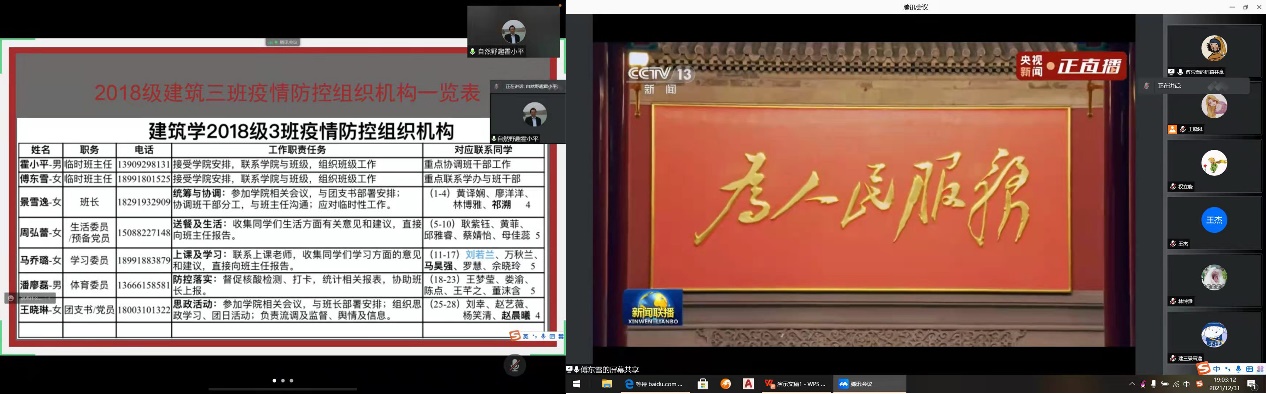 保障多方活动,守护为民情怀。建筑系党支部16名临时班主任坚持每日进行学生心理辅导,通过开展抗疫知识竞赛、联欢晚会、故事分享、观看主题讲座等学生班会、团日活动30余场。为学生普及抗疫知识,鼓励大家迎难而上,共克时艰。