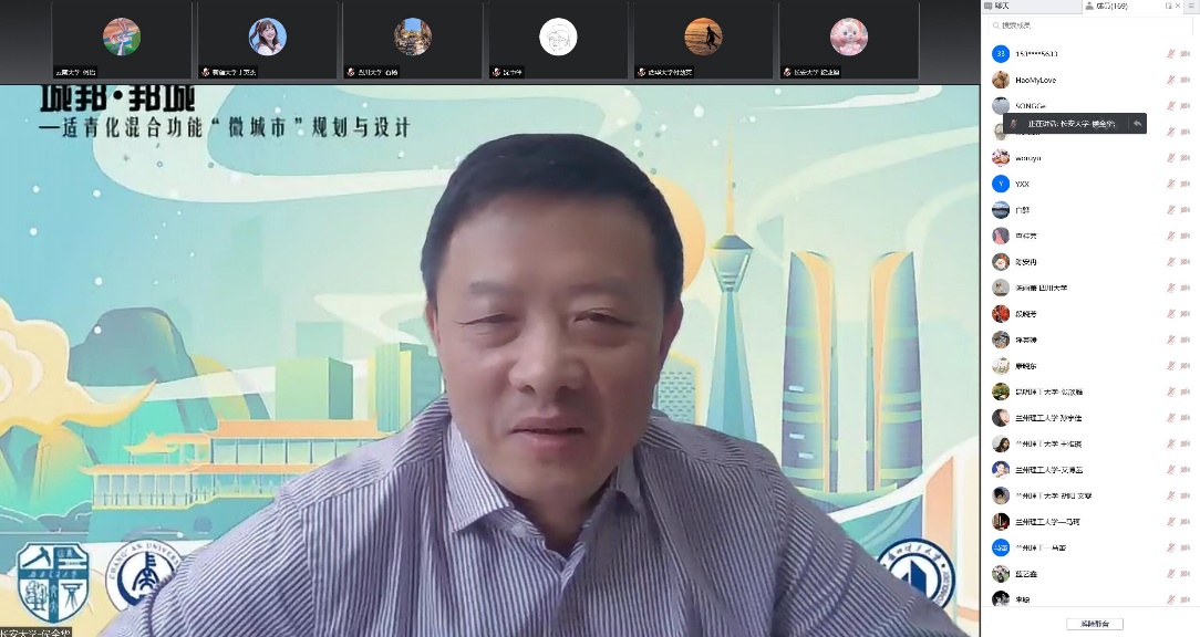 首先,沈中伟院长回顾了西部九校建筑类专业教学联盟的建设初衷,肯定了教学联盟“多方参与、多学科交叉,用跨学科、多角度的思维解决问题”的理念,并对本次联合毕设提出了期待。之后,长安大学侯全华院长对联合毕业设计主题提出了独到的见解,他认为青年人是城市的未来,需要解决青年人在城市中面临的问题,让他们更有“获得感”。并希望通过联合毕业设计,进一步推动西部院校的学术交流和教学模式的创新发展。紧接着,西南交通大学魏丹老师系统介绍了本次联合毕设的选题思路、定位与内涵、环境背景以及相关任务、时间安排与成果要求。本次启动仪式还请到了四川省建筑设计研究院主任规划师李建鑫。他介绍了相关案例与基地现状,并与师生展开了热烈的交流。最后,与会各院校代表教师依次发言,介绍了各校参与本次联合毕业设计的情况,分享了本次毕业设计的经验。同时,各校师生都在线上相互致意,完成了网络合影。