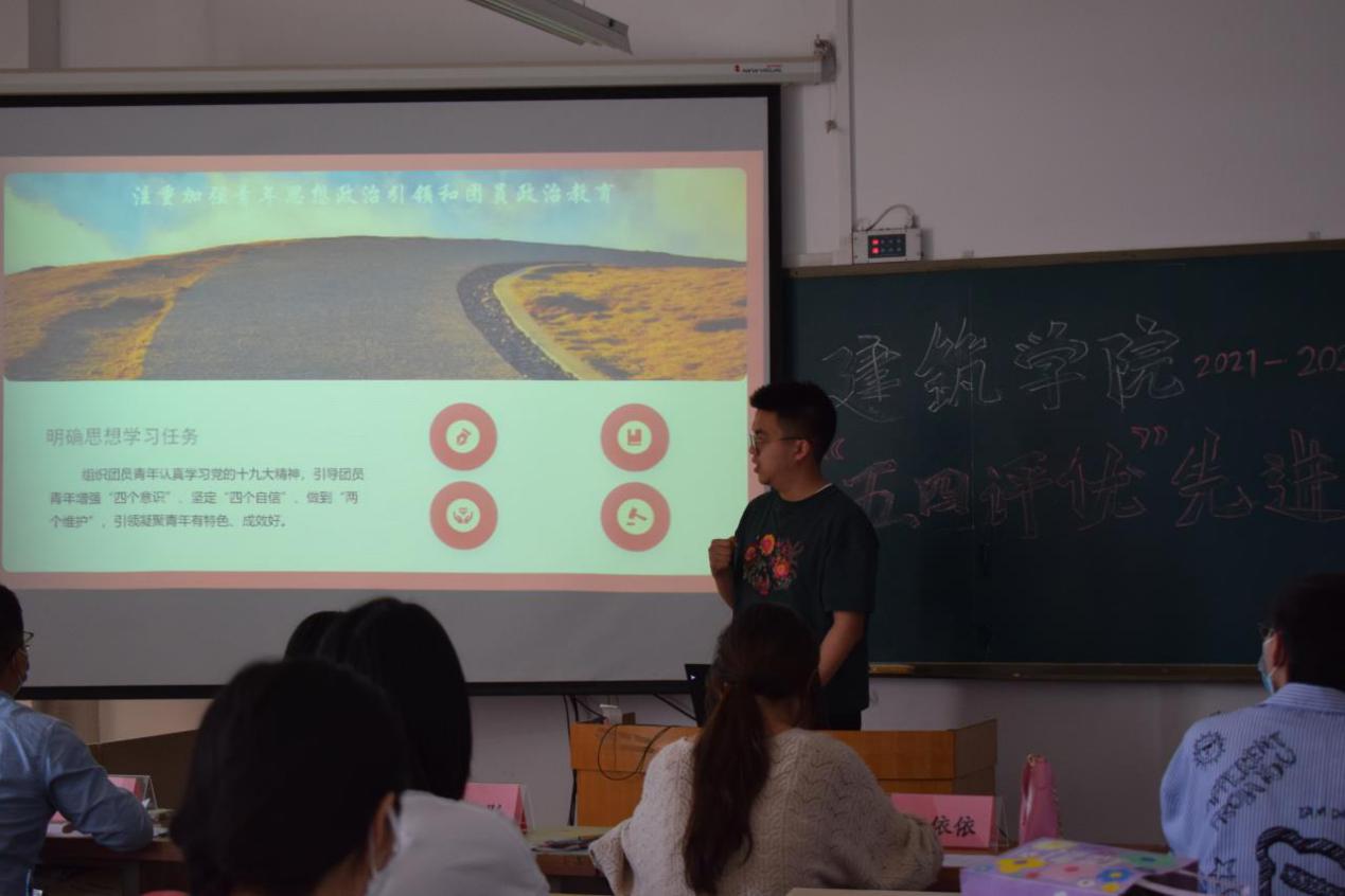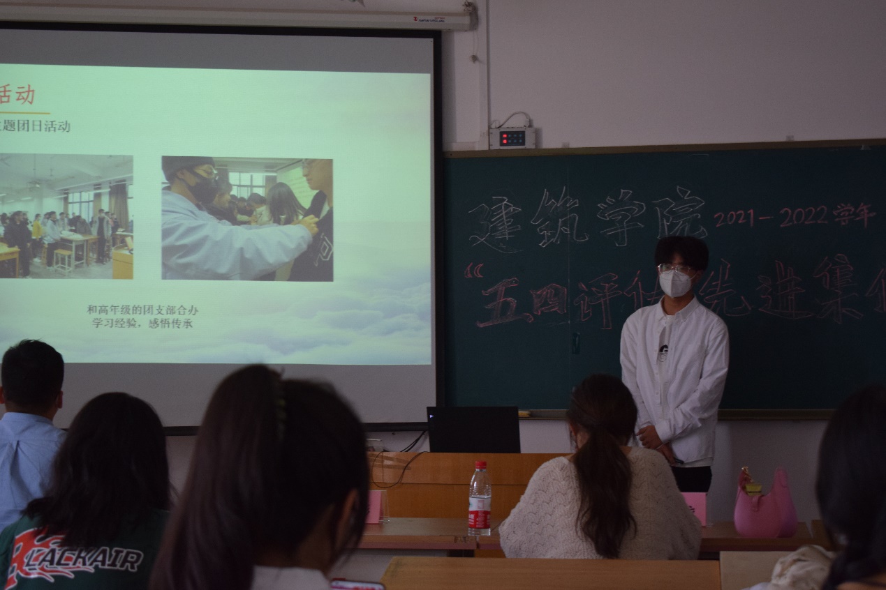 2021-2022学年,澳门巴黎人赌场 各团支部在澳门巴黎人赌场 团委的领导下,以习近平新时代中国特色社会主义思想为指导,开展了一系列团学工作,并取得了显著的效果,为总结经验,表彰先进,树立典型,澳门巴黎人赌场 于4月8日在建筑馆SY2413举办“五四评优”先进集体答辩会。