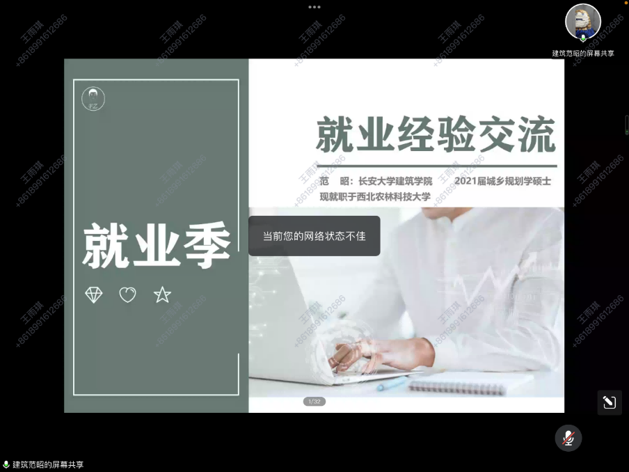 会议还邀请了优秀研究生毕业生范昭和在校研究生赵诗婧为同学们做考研就业经验分享。