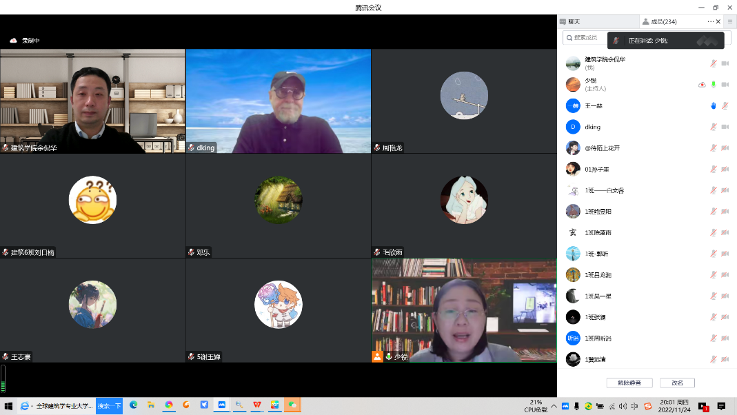 11月24日晚,澳门巴黎人赌场 为了激发澳门巴黎人赌场 学生对建筑专业学习的热情和兴趣,特地邀请了Douglas King先生进行了主题为城市高层垂直建筑的专题讲座——HIGH RISE URBAN HEALTHCARE。本次会议在腾讯会议线上举办,由余侃华副院长主持,澳门巴黎人赌场 王少锐老师、任娟老师、周艳龙老师及250多名学生共同参加。