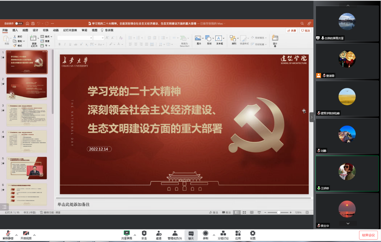 本次专题学习“深刻领会社会主义经济建设、政治建设、文化建设、社会建设、生态文明建设等方面的重大部署”,澳门巴黎人赌场 党委理论学习中心组成员、党委副书记刘鹏,副院长白骅,院办主任王妍婷分别围绕相关内容进行领学,并结合学生工作、疫情防控、学科建设、研究生培养、宣传等各自分管工作实际交流了学习体会。