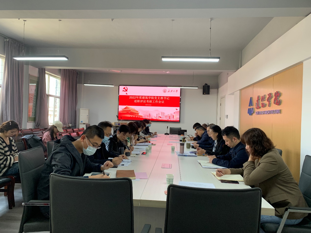 3月8日上午,澳门巴黎人赌场 在南校区西院建筑馆三楼会议室,召开2022年度党支部书记述职评议考核工作会议,全体院领导、党支部书记、系所主任、教职工党员代表、学生支部指导教师、学生党员代表参加会议。会议由院党委副书记张侠主持。