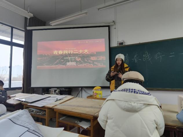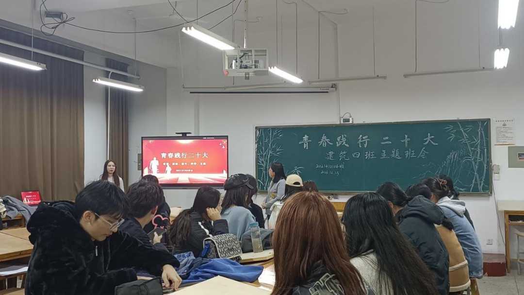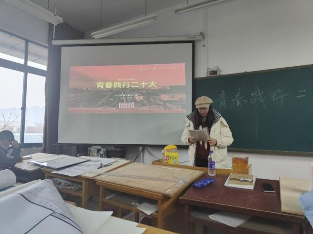 为全面贯彻党的二十大精神,迎接好新一学期的大学生活,2月23日晚,澳门巴黎人赌场 2021级建筑4班开展了“青春践行二十大”主题班会。会议由班长李佳玉同学主持,并邀请了班主任王少锐老师和辅导员李博轩老师。