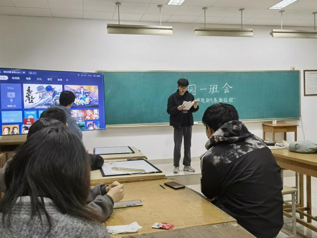 “我们更要对自己高标准严要求,只争朝夕,不负韶华,继续学习专业知识,为国家建设贡献青春力量。” 班长李佳骏同学对此次班会进行了总结,并组织大家观看征兵视频。