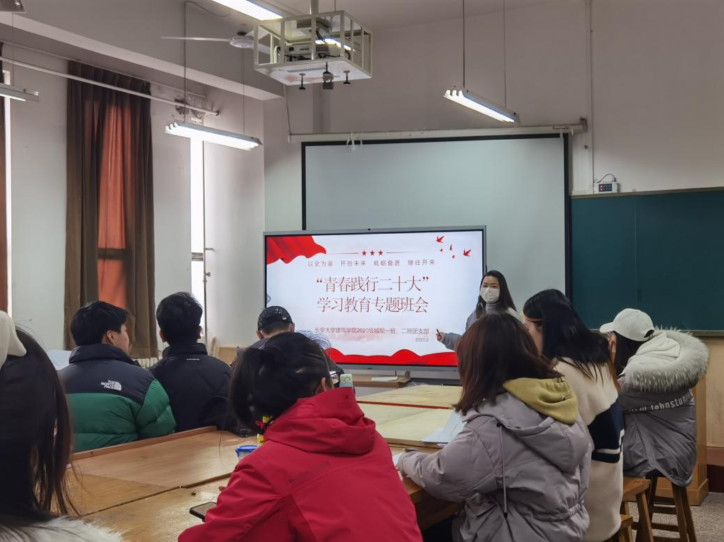 为深入学习贯彻党的二十大精神,引导广大青年团员听党话、跟党走,按照澳门巴黎人赌场 、澳门巴黎人赌场 工作安排,澳门巴黎人赌场 2020级各班分别开展了“青春践行二十大”主题班会。思政班主任贺燕飞老师和2020级辅导员申一彤老师共同参与,旨在为学生答疑解惑、传授经验,激励广大青年在新学期以奋进姿态激扬青春,不负时代,不负年华。