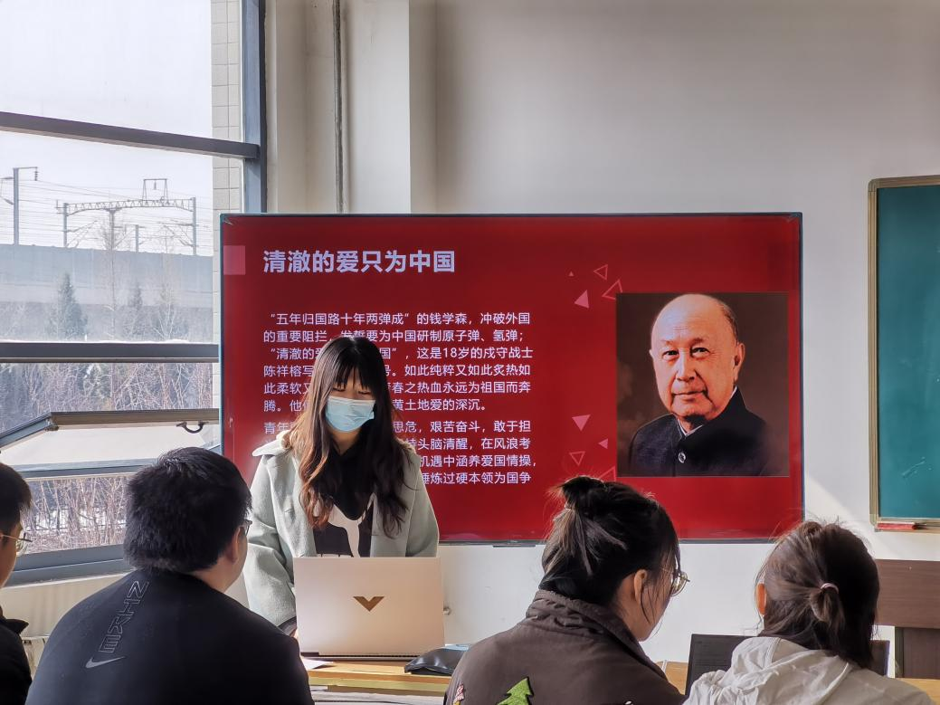 思政班主任贺燕飞老师在班会中指出,同学们要谨记每个人肩负的责任与使命,立志成长为新时代好青年,发挥好榜样典型的示范带动作用。同时贺燕飞老师还带领同学们温固了党的有关知识,倡导大家加强思政与科学文化建设,合理安排好学习与生活的时间,提升个人素养,陶冶情操,成为只争朝夕不负韶华的优秀大学生。