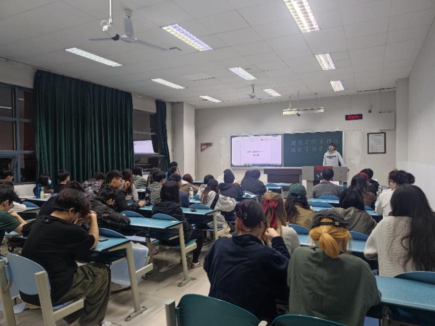 首先,谭宇老师就本次活动的基本要求和活动目的进行了详细介绍。他强调,“建筑日”活动即日起就正式启动,三个年级以班级为单位,全员参与。4月7日,指导老师将集中进行方案第一次审核指导,4月27日,各参赛队伍会在北校区图书馆前广场进行作品搭建、展示,比赛成绩由校友评分和教师线上评分共同组成。最终的一等奖作品将会作为商南县店坊河村村民广场改造的落地项目。希望同学们能够合理安排时间,积极参与活动。