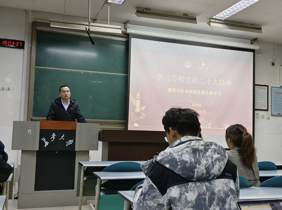 为深入学习宣传贯彻党的二十大精神,坚持不懈用习近平新时代中国特色社会主义思想铸魂育人,教育引导学生党员深入理解精神内涵,进一步增进对党的二十大精神的认知认同,把党的二十大精神细化为实际行动,不断提升学生党员的思想觉悟,4月7日晚,澳门巴黎人赌场 本科生第一、第二党支部在WM1304开展党的二十大精神学习分享会。会议由本科生第一党支部书记周艳龙主持。