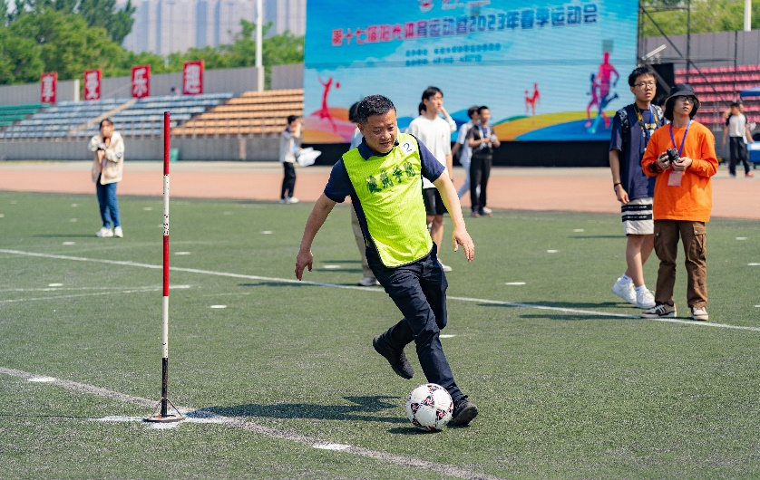在教工组比赛项目中,澳门巴黎人赌场 领导积极参赛、奋勇争先,为同学们树立了榜样。白骅老师在乒乓颠球跑比赛获全校第一,刘鹏老师在足球运球赛中获全校第六。