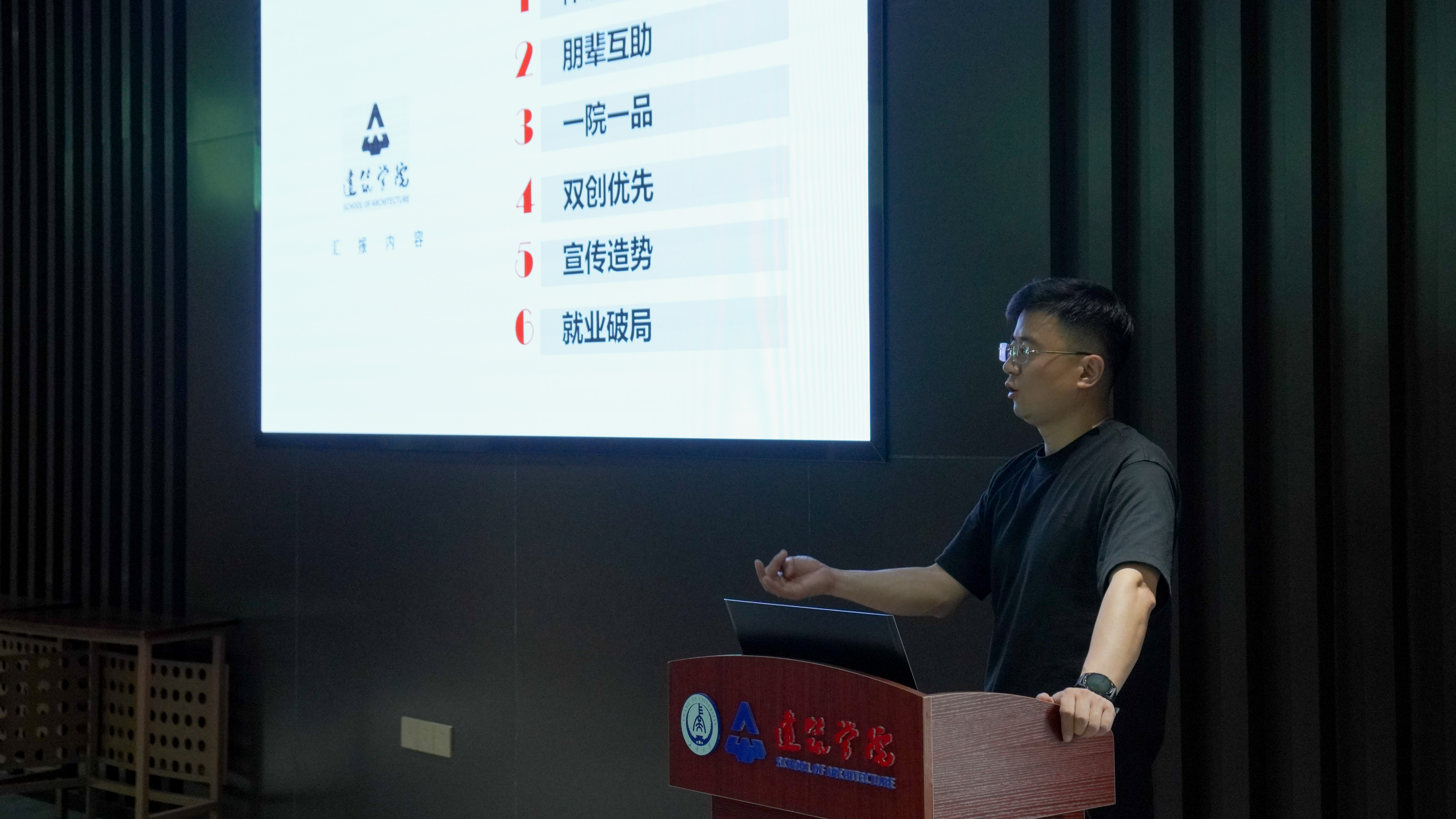 刘鹏书记首先强调了”朋辈互助”的重要性,着重感谢了优秀杰出校友对澳门巴黎人赌场 “建筑日”品牌活动的大力支持和专业指导,介绍了校友们对在校师生创新实践能力的高度认可和赞誉,讲述了校友们对母校的深厚感情。凭借广大校友的支持和帮助,澳门巴黎人赌场 在建筑类专业领域中不断发展前进,希望能够进一步密切与校友联络,也希望在校同学不断加强与毕业师兄师姐们沟通交流,做好传承。