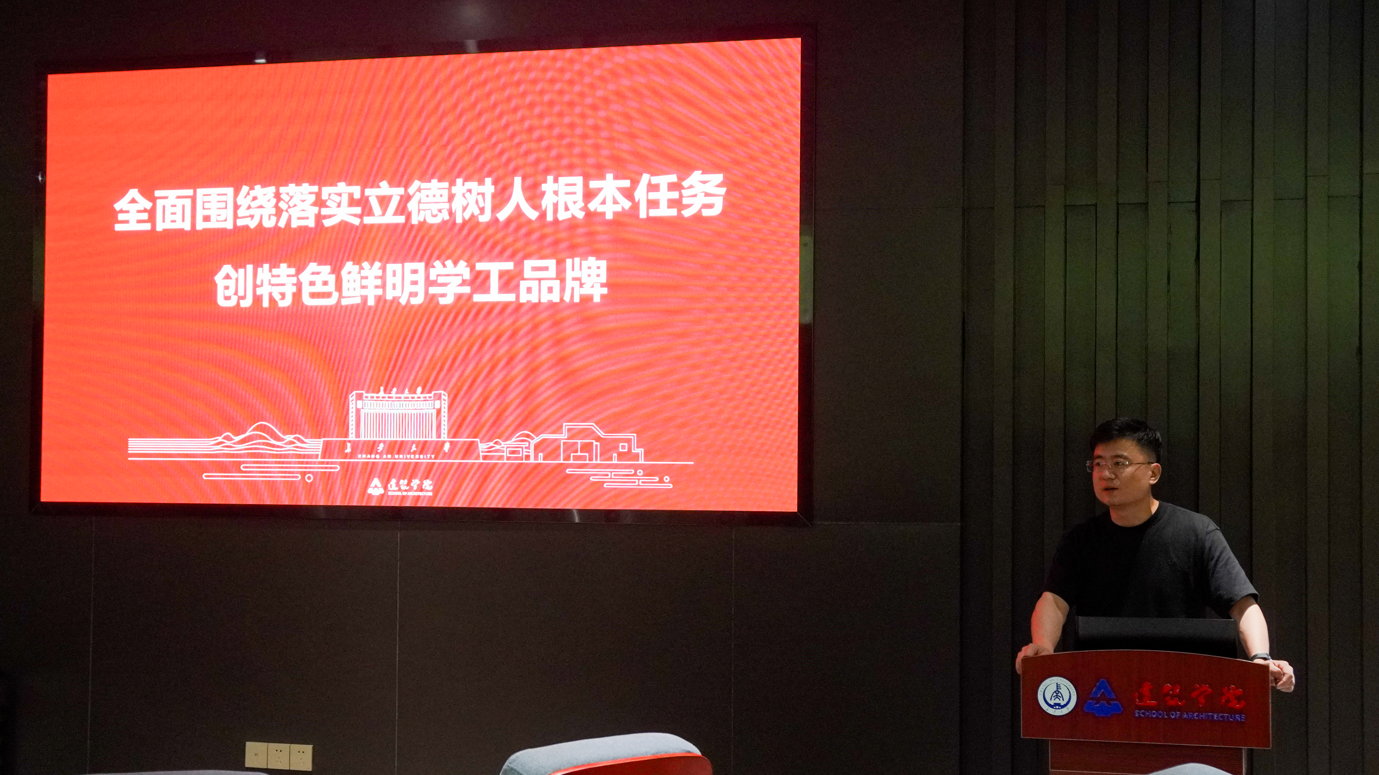 党的二十大报告提出:“育人的根本在于立德。全面贯彻党的教育方针,落实立德树人根本任务,培养德智体美劳全面发展的社会主义建设者和接班人。”2023年6月16日上午10点30分,按照主题教育计划安排,院党委副书记刘鹏在建筑馆二楼报告厅面向研究生党员以“立德树人”为主要内容讲授主题党课,全体研究生党员骨干参加。