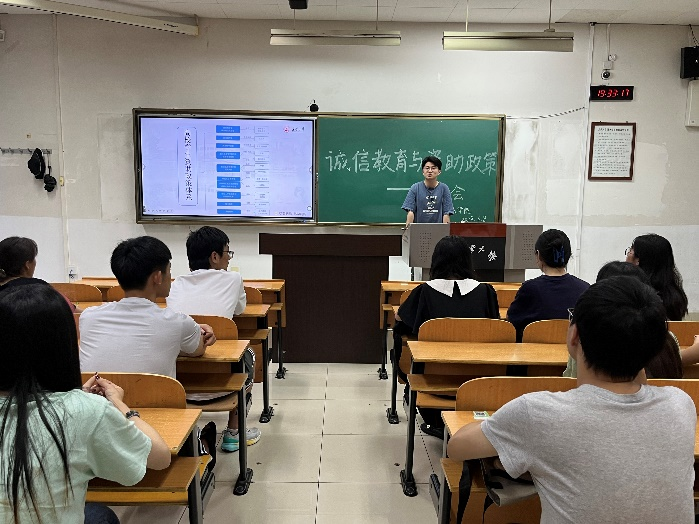 为大力宣传国家学生资助政策及其成效,充分发挥学生资助的导向和育人功能,激励同学们担当时代使命、奋发自强、成长成才,澳门巴黎人赌场 6月8日晚于wm1112教室开展“感恩诚信,助学筑梦” 诚信教育与资助政策主题宣讲会。会议由辅导员李博轩主持,社会奖助学金获得者以及澳门巴黎人赌场 全体勤工助学岗位的学生参加了会议。