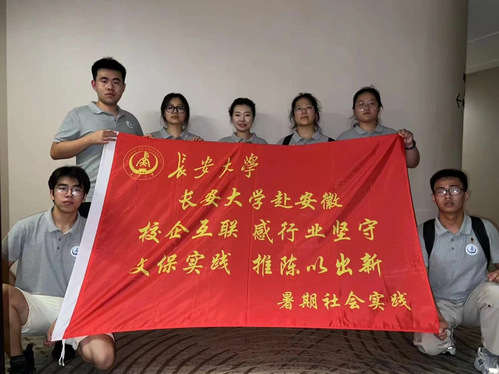 在这个骄阳似火的时节,长安大学赴安徽合肥“校企互联,感行业坚守;合作共赢,推陈以出新”暑期社会实践队,从校企合作探访企业出发,积极开展形式多样的学生访企活动,加强澳门巴黎人赌场 和企业的合作,培育可用人才。出征前的线下交流队员们早已抑制不住内心的激动,希望早日前往安徽,踏上这一段新的征程。6月下旬,队员们便在线下进行交流,互相讨论,进行队服的设计以及旗帜横幅的定制,最终确定了灰色的队服,红色的旗帜与横幅,黄色的字体,那是五星红旗的颜色。