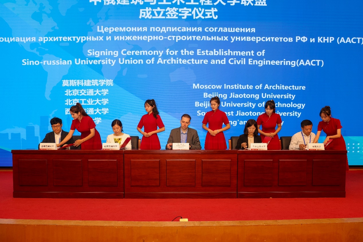 为推动我国与俄罗斯高校开展在建筑与土木工程领域更深层次更宽领域的教育交流合作。2023年9月18日,在北京交通大学举行了中俄建筑与土木工程大学联盟章程签字仪式。俄罗斯建筑与建设科澳门巴黎人赌场 副主席、莫斯科澳门巴黎人赌场 副校长叶萨乌洛夫院士以及莫斯科澳门巴黎人赌场 副校长科切尔金教授等4位俄方代表参会,著名建筑师马国馨院士、国家勘察设计大师王凯、李兴钢、崔彤、刘力以及北京交通大学、西南交通大学、长安大学、北京工业大学等国内建筑界相关负责同志出席了本次活动。