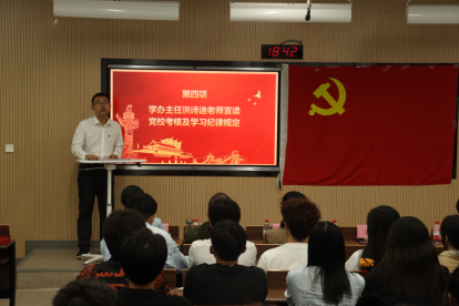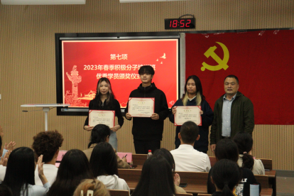 二级党校考核及学习纪律规定,希望大家严格遵守党校纪律,顺利结业并获得优异成绩;培训班学员代表许倚萌同学发言,表达了她参加培训的态度和决心;李雨青带领2023年春季新发展党员重温入党誓词,慷慨激昂;2023年春季二级党校入党积极分子培训班优秀学员表彰仪式,李险峰老师为李佳玉、何环坤、施展三位优秀学员颁奖。
