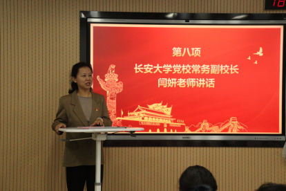 最后,长安大学党校常务副校长闫妍老师讲话,闫妍老师带领同学们回顾共产党百年光辉历程,发出对积极分子的鼓舞和希冀,希望学员们从思想上认识党、情感上热爱党、行动上追随党,端正入党动机,在学习生活中积极发挥先锋模范作用,坚定理想信念,提升品德修养,勇担历史使命。