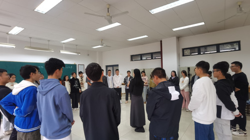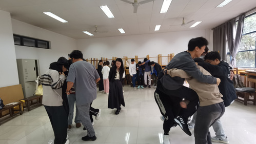 活动的目的是锻炼同学们的注意力和反应能力。由陈丹睿老师说出大风吹的要求,符合要求的学生要迅速换位,动作最慢的学生要表演小节目。在大风吹时,有些学生很幸运的被吹到多次,给大家留下了深刻印象。通过第一个破冰小游戏,气氛迅速升温,场面变得活跃起来。