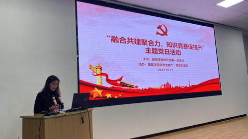 2023年10月23日晚7点,澳门巴黎人赌场 研究生党支部“融合共建聚合力,知识竞赛促提升”主题党日活动在南校区西院综合楼三楼报告厅隆重举行,本次活动由澳门巴黎人赌场 研究生第一党支部主办,第二、第三党支部协办,学办主任洪诗迪老师、研究生辅导员王杰老师、王雨琪老师以及全体研究生党员同志参会,会议由研究生第一党支部书记武彤曦主持。