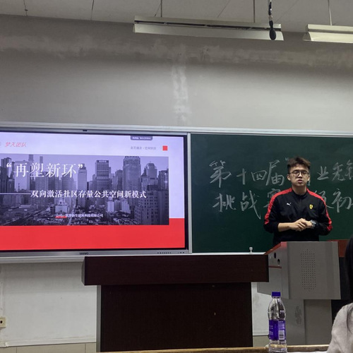 其次,各参赛队伍依次开始答辩。项目分别为《“再塑新环节”——双向激活社区存量公共空间新模式》《可控偏振光调光式组合玻璃窗》《梦想改造家——后疫情时代下室内VR设计技术服务》《良“湿”益友——基于自然教育目标的湿地环保课程网站和产品设计与研发》。