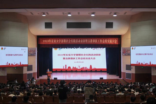 9月28日下午,2023年长安大学暑期社会实践活动表彰暨支教帮扶工作总结交流大会在北校区长安文化艺术中心大礼堂举行。校党委副书记黎开谊出席会议并发言,校办、宣传部、学工部、研工部、教务处、党校等有关部门负责人,各院(系)主管学生工作领导,校团委全体干部,各分团委、团工委书记及获奖师生代表共500余人参加大会。校团委书记张永主持会议。