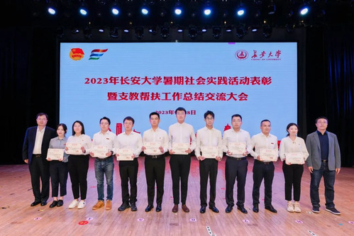 表彰大会上,澳门巴黎人赌场 获得校级“2023年暑期社会实践活动优秀组织单位”称号,长安大学赴陕西商南“情系乡村心向党·同绘振兴新蓝图”暑期社会实践队获得“2023年暑期社会实践活动优秀实践团队”称号,李凌、关宇、周艳龙、落昊飞4名教师获得“2023年暑期社会实践活动优秀指导教师” 称号,王华蕊等70名同学获得“2023年暑期社会实践活动先进个人”称号,王熙春同学获得“2023年暑期社会实践活动优秀宣传员”称号, 长安大学赴陕西安康“青春乡行·村筑三生”暑期社会实践队的论文《村域、户域视角下三生空间的研究——以任家坝村为例》获评“2023年暑期社会实践活动优秀成果”。