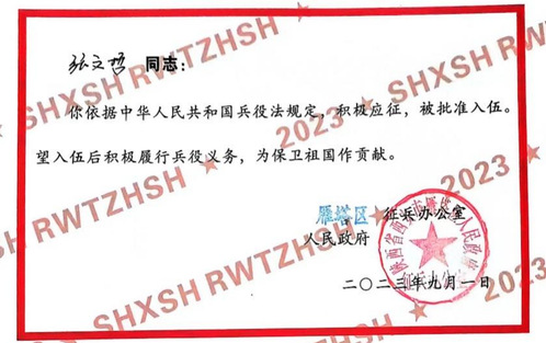 2021级风景园林二班的学生,今年9月份,他终于如愿以偿拿到了雁塔区颁发的入伍通知书。