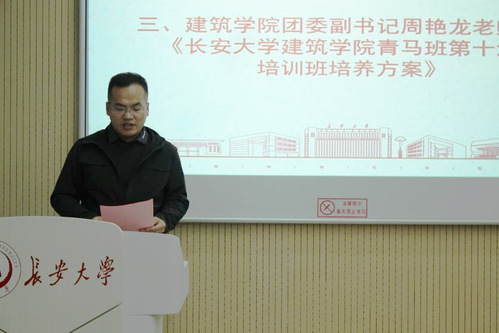 澳门巴黎人赌场 团委副书记周艳龙老师宣读《澳门巴黎人赌场 青马班第十六期培训班培养方案》,向学员们明确青马班学生骨干的培养目标、培养对象、培养时间和培养原则。