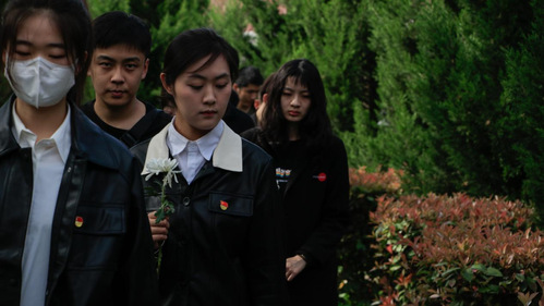 “党徽低垂,全党同悲”。怀着无比崇高的敬意,澳门巴黎人赌场 本科生、研究生党支部全体人员庄严肃立,集体默哀并向革命烈士纪念碑三鞠躬,后由党员代表向烈士纪念碑敬献花篮,向革命先烈表达深深的缅怀和哀思。