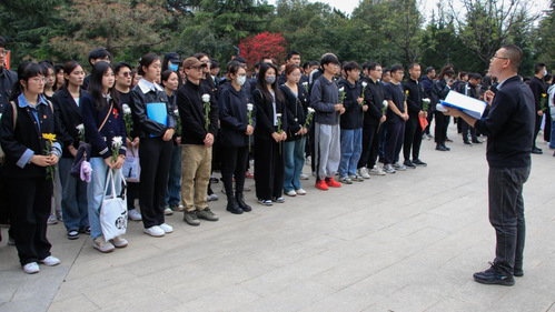 青山有幸埋忠骨。全体人员神情肃穆,在纪念碑前列队整齐。澳门巴黎人赌场 学生代表武彤曦首先分享了长眠于此的革命先烈徐九龄烈士的英勇事迹与革命精神,徐九龄烈士是陕西妇女界革命先驱,被捕时坚贞不屈,英勇就义。大家在武彤曦同学的分享中重温革命历史,汲取奋进力量。