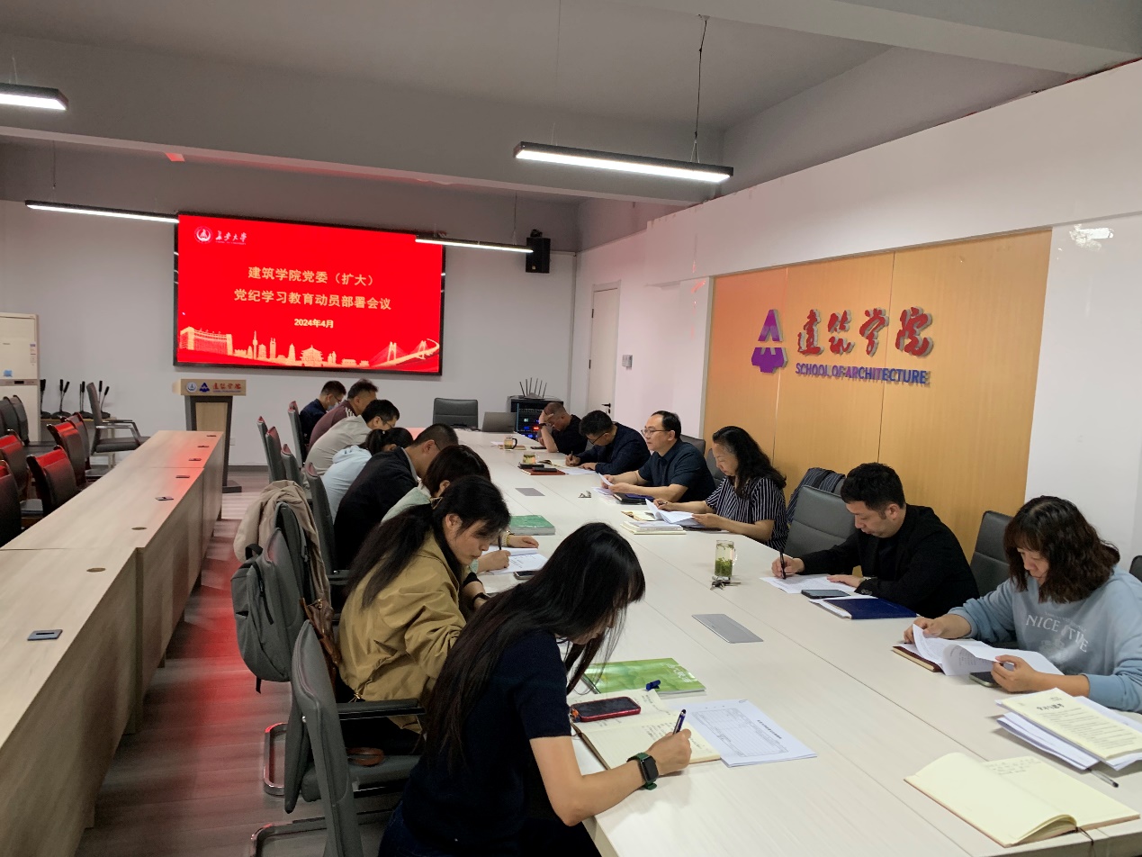 近日,澳门巴黎人赌场 在南校区西院建筑馆三楼会议室,召开党委(扩大)暨党纪学习教育动员部署会,会议按照澳门巴黎人赌场 党委关于党纪学习教育的部署要求,对澳门巴黎人赌场 党委开展党纪学习教育进行了动员安排。会议由院党委书记贾侃主持。