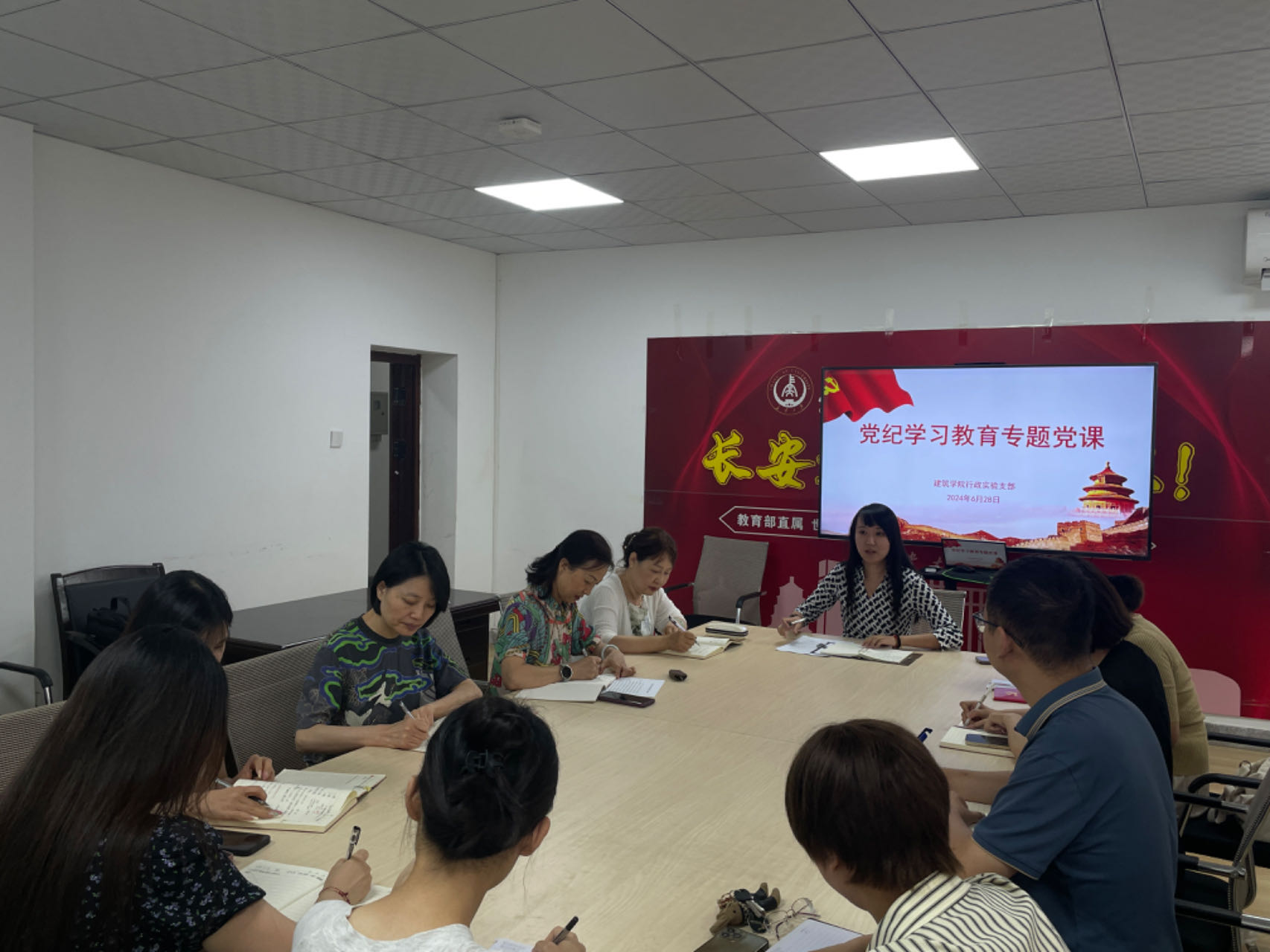 为了深入学习贯彻新修订的《中国共产党纪律处分条例》,扎实推进党纪学习教育,进一步强化澳门巴黎人赌场 党员干部的纪律意识,6月28日上午,行政实验支部联系党委委员,澳门巴黎人赌场 党委副书记、行政副院长冯鹃、行政实验支部书记王妍婷在南校区西院建筑馆二楼会议室,为全体院领导、讲授党纪学习教育纪律党课。