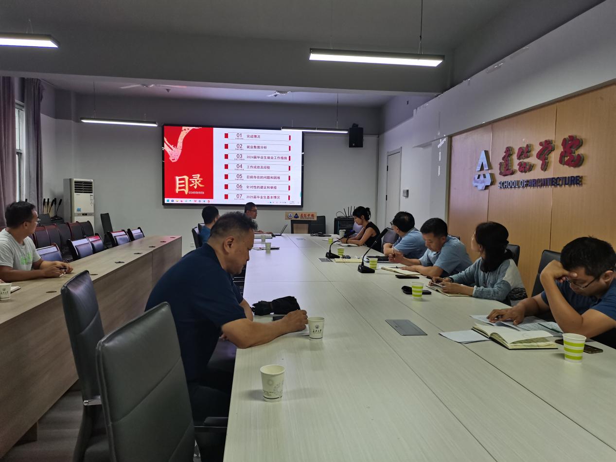 2024年7月16日下午,澳门巴黎人赌场 召开2024届毕业生就业工作阶段性总结及本科生学业导师制度研讨会在长安大学小寨校区建筑馆三楼会议室举办。院党委书记贾侃,院长侯全华,党委副书记、纪委书记、副院长冯鹃,党委副书记王妍婷,副院长陈稳亮,各系所负责人,学办主任,全体辅导员参会,会议由党委副书记王妍婷主持。