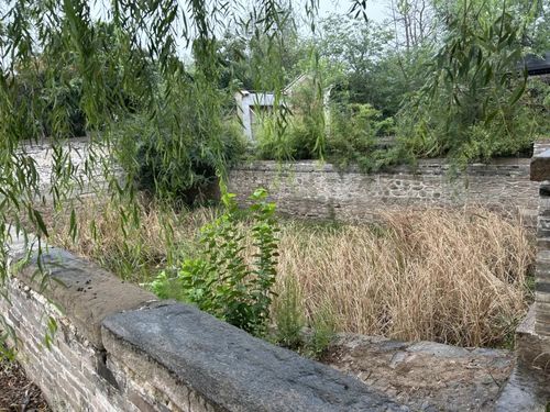 7月17日,实践队员到达柳村村委会后,村干部与团队成员进行座谈交流,并就村内的涝池使用情况、村落生态环境以及基础设施建设等情况展开详细介绍。据了解,随着乡村振兴战略的不断推进,村落的基础设施愈加完善,由此导致承载蓄水功能的涝池逐渐荒废,同时涝池因疏于管理而成为无人驻足、杂草丛生的废弃水坑。随后,在村干部的带领下,实践队员前往涝池查看其现状情况。
