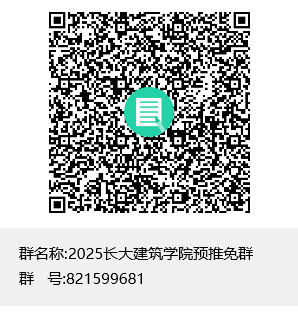 1. 请各位推免生于9月22日12:00前加入“2025长大澳门巴黎人赌场 预推免群”(群号:821599681)。加群时注明姓名+报考专业及编号+本科澳门巴黎人赌场 ,相关通知及安排将在群中及时公布,群二维码如下: