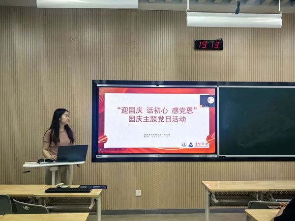 本科学生党支部于9月27日晚,在北校区修远教学楼WX2200举办“迎国庆·话初心·感党恩”国庆主题党日活动,活动由本科生第一党支部书记王雨琪老师主持,全体党员以线上线下相结合的方式参加。