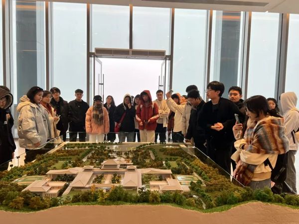 在参观过程中,老师为同学们细致讲解了西安国家版本馆的建筑、规划及景观设计理念。该建筑群由中国工程院院士张锦秋领衔设计。设计团队汲取了古今建筑融合的灵感,巧妙地将中国传统建筑风格与现代设计元素相融合,打造出别具一格的建筑风貌。