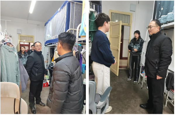 党委书记贾侃、副书记王妍婷带领全体专兼职辅导员深入南北校区学生宿舍开展新学期安全卫生检查及走访活动,给同学们传达新学期的关怀与问候。