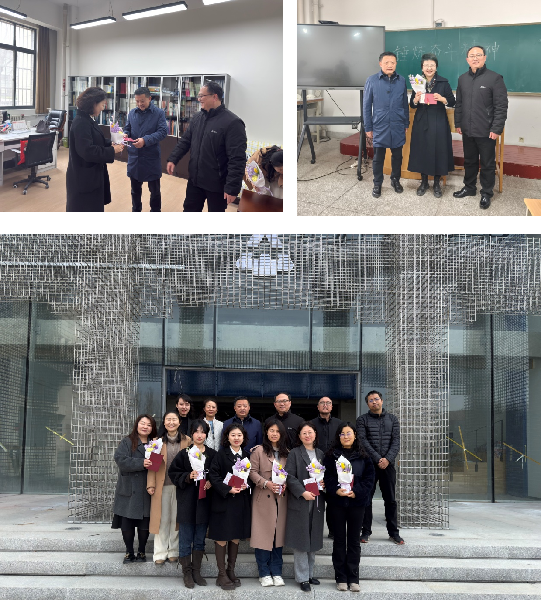 澳门巴黎人赌场 党委书记贾侃、院长侯全华一行带着鲜花和贺卡,深入南北校区澳门巴黎人赌场 系、所办公室,图档室,专业教室,对坚守在教学科研育人一线的女教授、女教师,家庭困难女教工进行慰问。