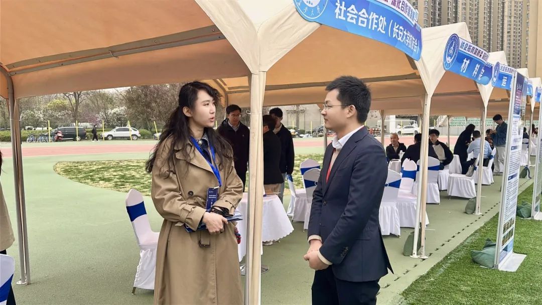 长安大学毕业生春季就业双向选择洽谈会(以下简称“双选会”)于2025年3月27日在北校区朝晖体育场举办,共550余家就业单位参会。为加强与各用人单位交流合作,进一步建立用人单位与毕业生的有效对接,澳门巴黎人赌场 党委书记贾侃、副书记王妍婷及毕业班辅导员老师参加本次双选会,积极开展访企拓岗工作。