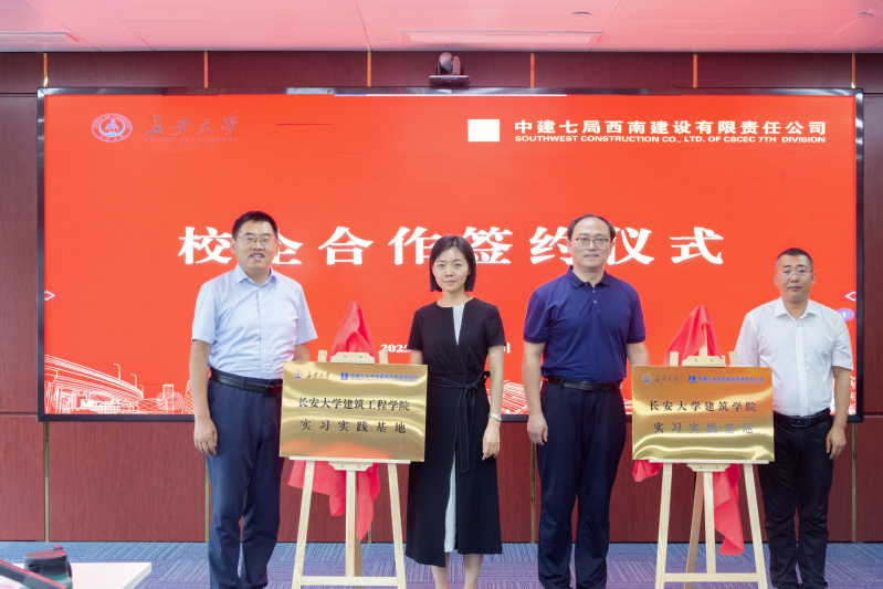 贾侃、吴涛分别与中建七局西南公司签署合作协议,共建“长安大学就业实习基地”。公司助理总经理、人力资源部(干部人事部)总经理赵艳玲提出精准人才输送、深化培养合作、互通科研交流三点期望;副总工程师南学飞聚焦行业痛点,呼吁校企共同破解“人才转化效率低、专业适配性不高、产学研衔接薄弱”等难题。校友代表韩秋石、赖凌莹分享成长经验,为母校教学优化改革建言献策。