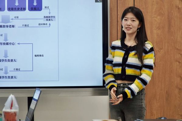 随后,青年传媒中心主任王曼婷统一介绍青媒日常工作,向新同学清晰展示常规任务,为大家快速适应团队节奏提供指引。
