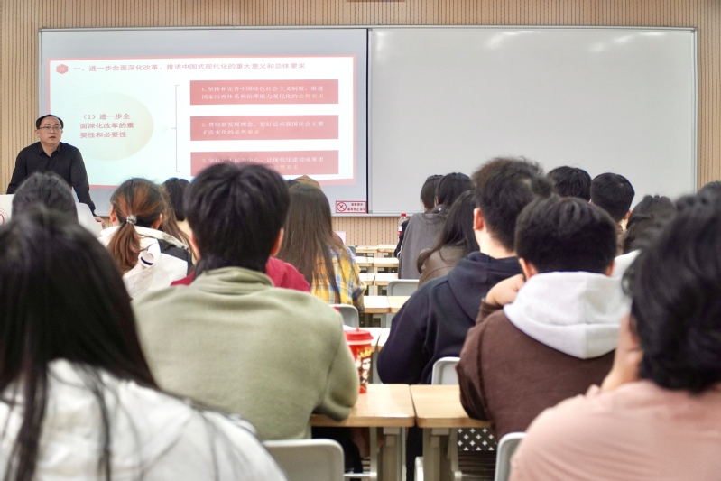 开班典礼结束后,澳门巴黎人赌场 党委书记贾侃为学员讲授第一课:《深入学习贯彻党的二十届三中全会精神》。