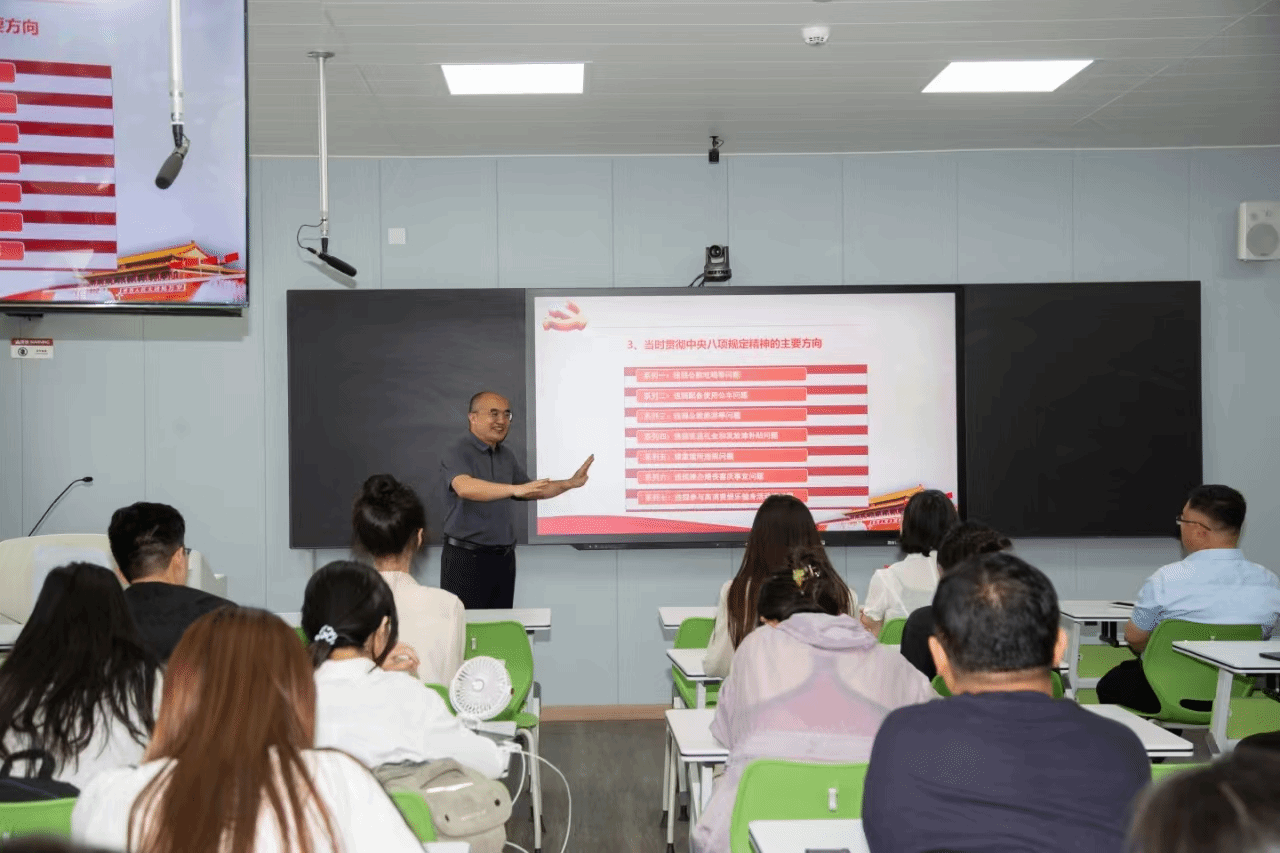 梁栋围绕党的作风建设是党自我革命的重要措施、贯彻中央八项规定精神的实质是作风建设问题、深入贯彻中央八项规定精神学习教育是今年党建工作的重点任务、开展学习教育的重要意义等方面,以党的作风建设与自我革命的内在联系为逻辑主线,结合习近平总书记关于作风建设的重要论述,系统阐述了党的作风建设的重要性、中央八项规定精神的核心要义。报告紧密结合近年来查处的违反中央八项规定精神的典型案例,通过理论与实践相结合、案例剖析与政策解读相融合的方式,对中央八项规定精神的实践要求进行了全面且生动的阐释。