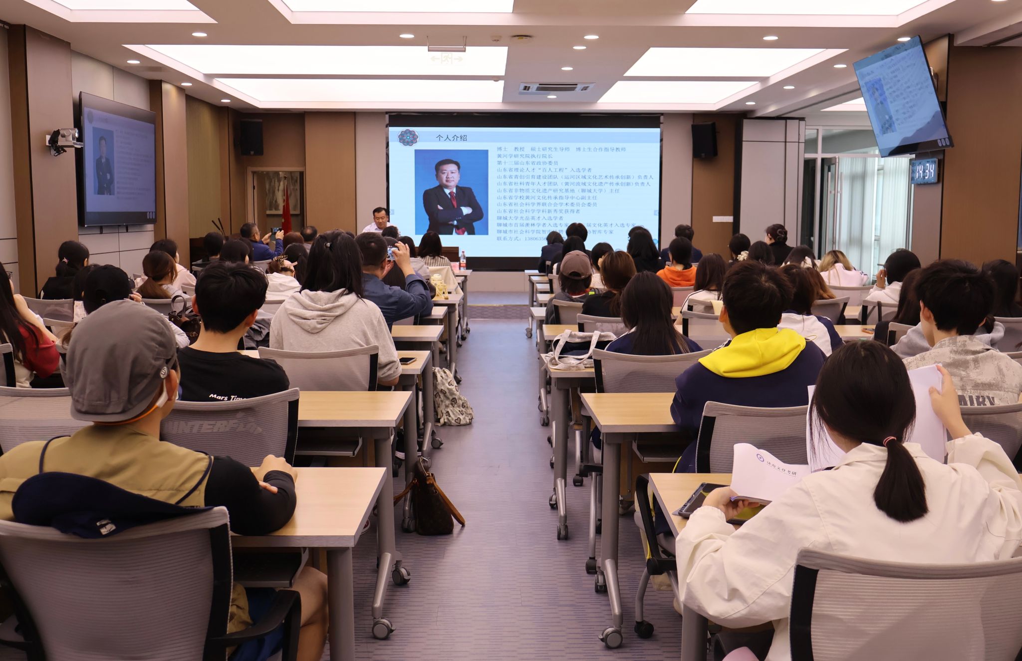 讲座中,张兆林以黄河流域民俗生活与文化遗产为切入点,从“文化勾陈”“民间俗信”“续写华章”等方面展开系统讲解。他结合长期田野调查积累的丰富案例,引导师生从普通民众的日常生活、审美创造和精神世界中理解黄河文化的深厚底蕴,阐释民俗文化遗产在历史延续、社会发展和文化认同中的独特价值。张兆林指出,黄河文化不仅存在于宏大的历史叙事中,也深植于民间器物、手工技艺、生活习俗和乡土记忆之中。民间艺术不是静止的文化标本,而是在生产生活中不断生成、传承和转化的活态文化。