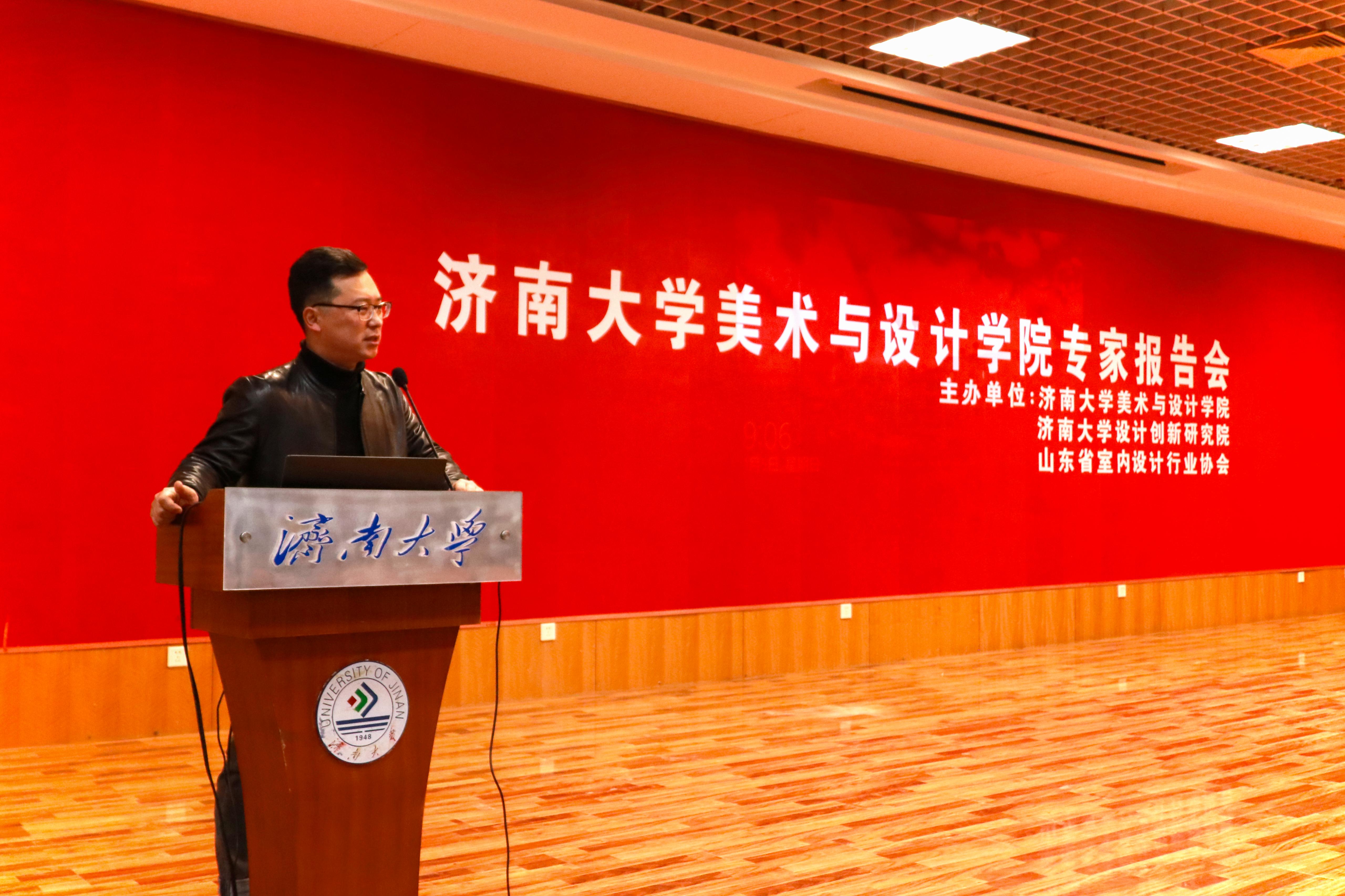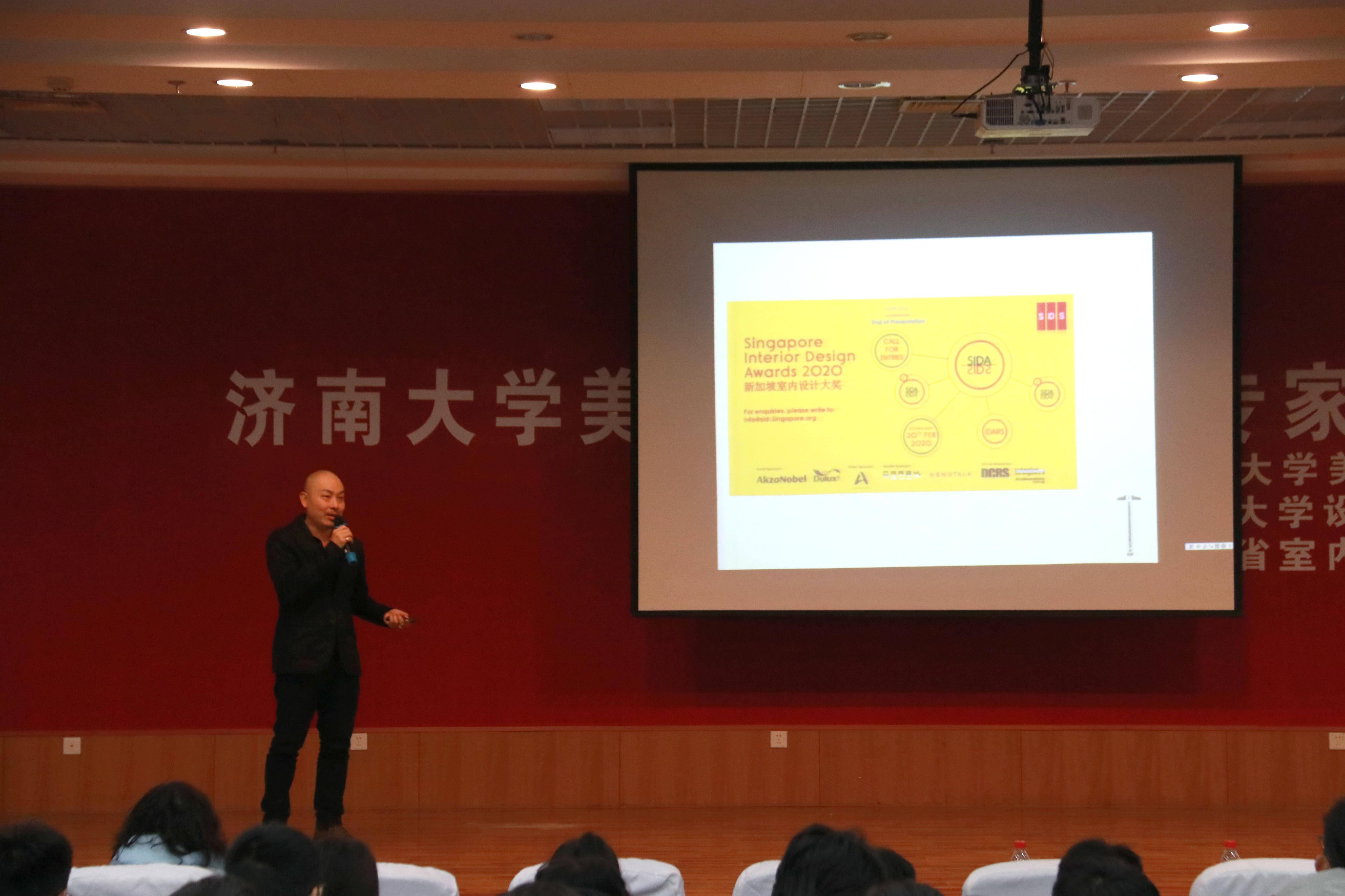 报告会伊始,李光红副校长分别为新加坡室内设计师协会理事长王胜杰和山东省室内设计行业协会秘书长何金朔颁发客座教授、双创导师聘书。新加坡室内设计师协会理事长王胜杰为大家带来一场主题为“室内建筑学方法论”的讲座。王胜杰理事长以设计师要有探险家和侦探的思考方法为切入点,讲述了形体的创造、形体的接触方式、注射建筑方法论等概念。并结合自己多年的设计作品,从平面图、效果图、成品图等多层维度,对零售空间、酒店空间、餐饮空间、公共机构空间、办公空间、住宅空间这六种空间设计展开叙述与解读。昆明滇峰概念店、平江狮口崖酒店、中南大学咖啡厅、新加坡山边小别墅等等,这一个个精彩绝伦又充满匠心的作品,将在场师生都带入了设计唯美又新奇的世界。感性设计,理性思考,因地制宜,就地取材,王胜杰用自己的作品与行动,为我们展现了一名设计师的责任与匠心。最后,王胜杰说:“创意是一种探险,每一步的前进都是新的体验。”让我们看到了一位优秀设计师的热爱和坚持。