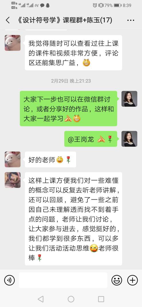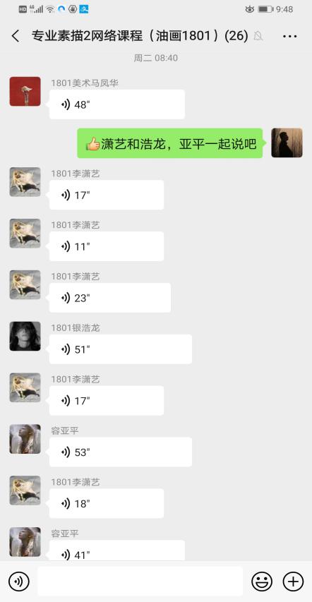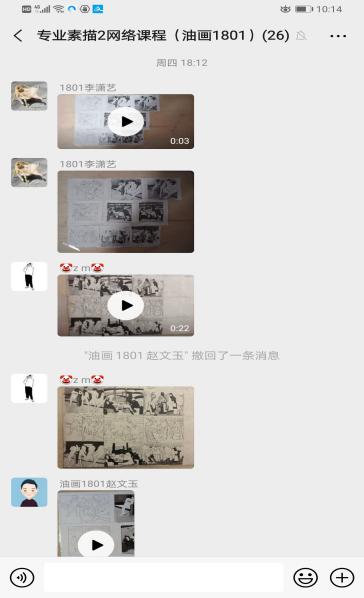 丁奕翔老师:目前所开课程为大一专业基础课。根据专业特点,在授课群的基础上,另外建立了国画、油画、综绘三个不同的专业方向群,使学生的讨论更有针对性,效果更佳。另外,认真总结第一周的教学状况,并提出第二周的改进内容,为保证线上教学质量做好保障。