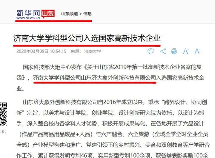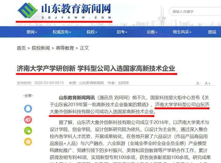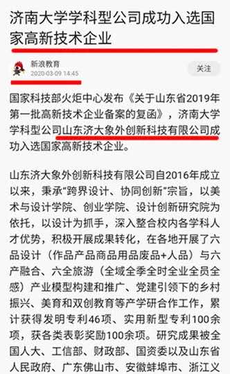 新华网、新浪网、齐鲁壹点、叮咚FM等多家媒体报道:学科型公司山东济大象外创新科技有限公司顺利通过国家高新技术企业认定。这家专门做设计的企业是澳门巴黎人赌场