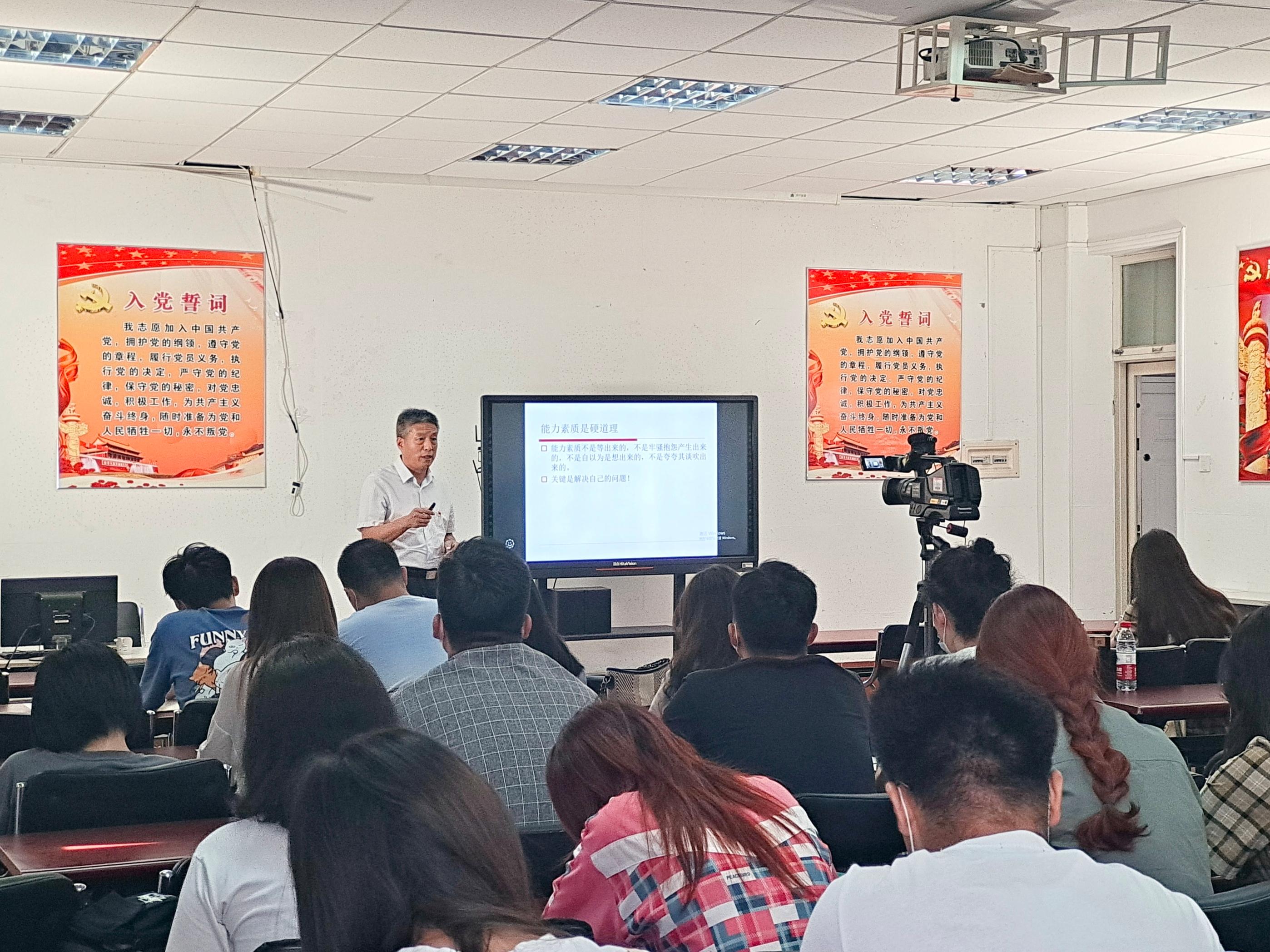 学生上一次疫情期间特殊的党课。他从自身在过去的工作、生活、学习过程中所遇到的事情展开话题,引导学生们独立思考,并分别从动力、压力、合力、活力四个方面来阐述学生所要具备的能力与品质,郝书记强调大学生党员,要守住共产党员的初心和使命,明辨大是大非,身体力行去实践爱国的宣言。
