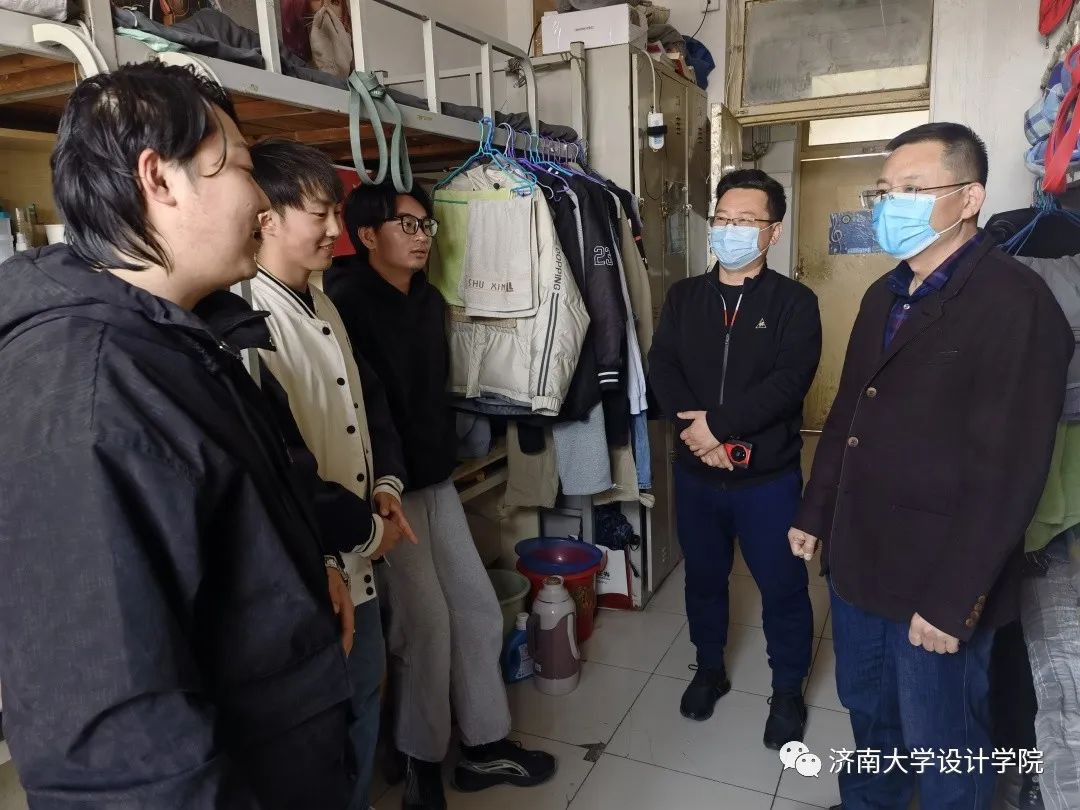 党委书记王勇、副院长杨海波、党委副书记信苏珊和辅导员深入学生宿舍,了解学生的学习生活情况,提醒同学们做好疫情防护。
